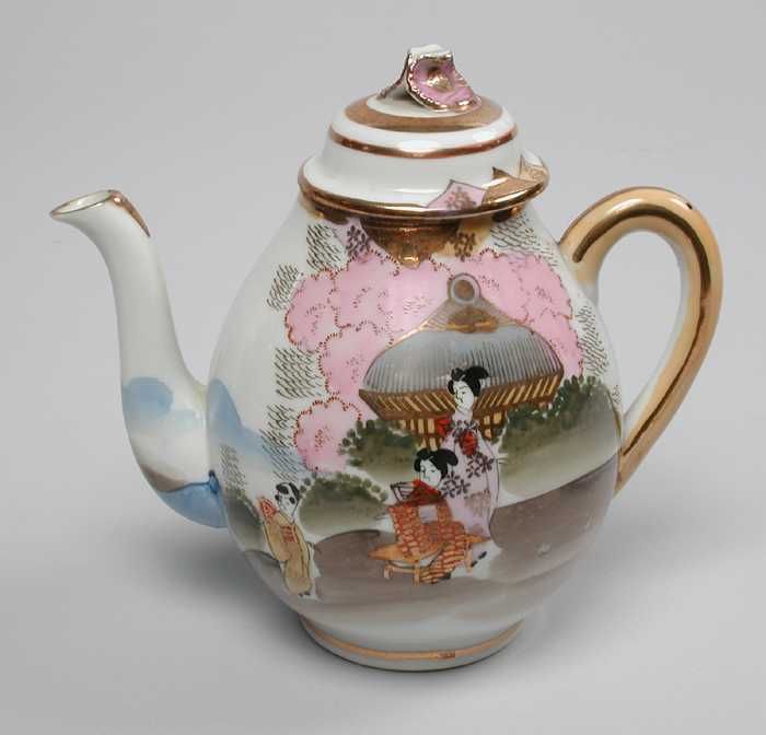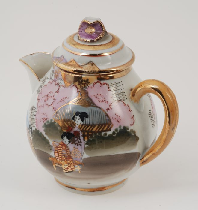 Theepot van Japans eierschaal-servies met goudkleuri...