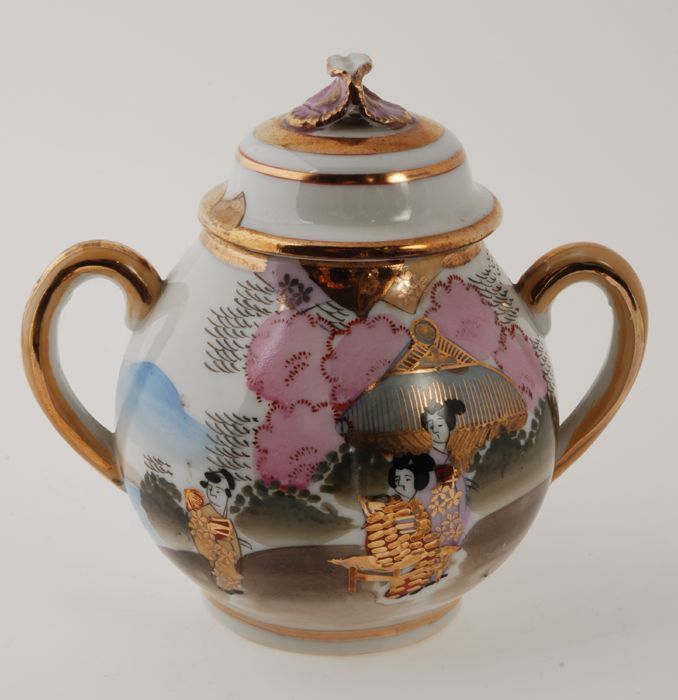 Suikerpot van Japans eierschaal-servies met goudkleu...