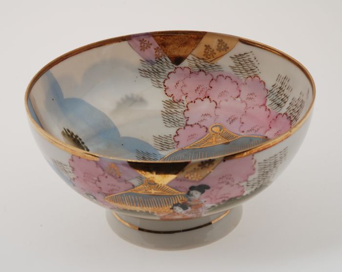 Spoelkom van Japans eierschaal-servies met goudkleur...