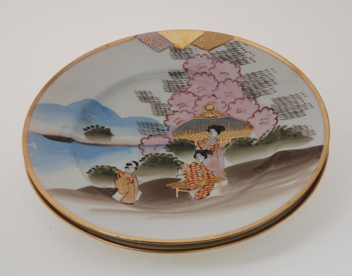 Twee borden van Japans eierschaal-servies met goudkl...