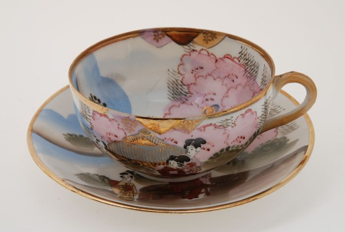 Melkkan van Japans eierschaal-servies met goudkleuri...