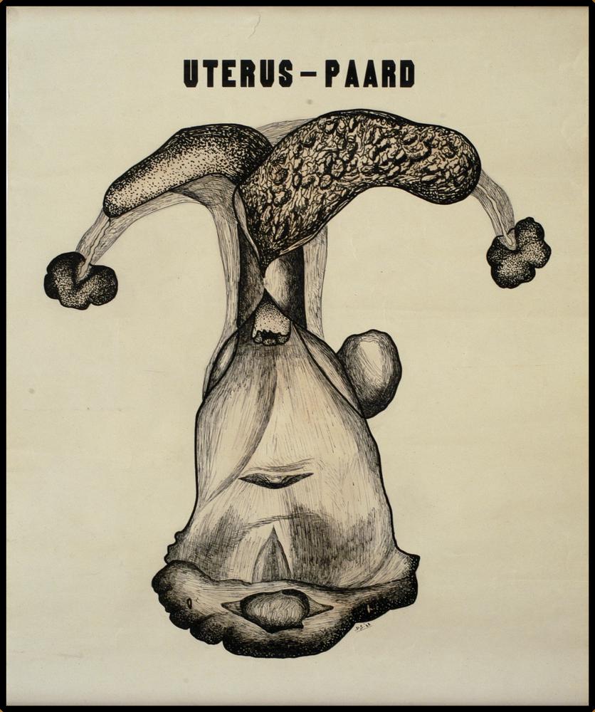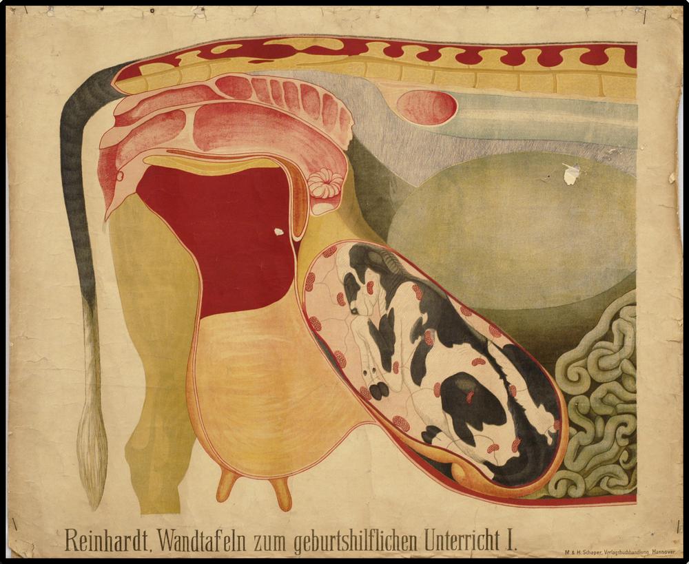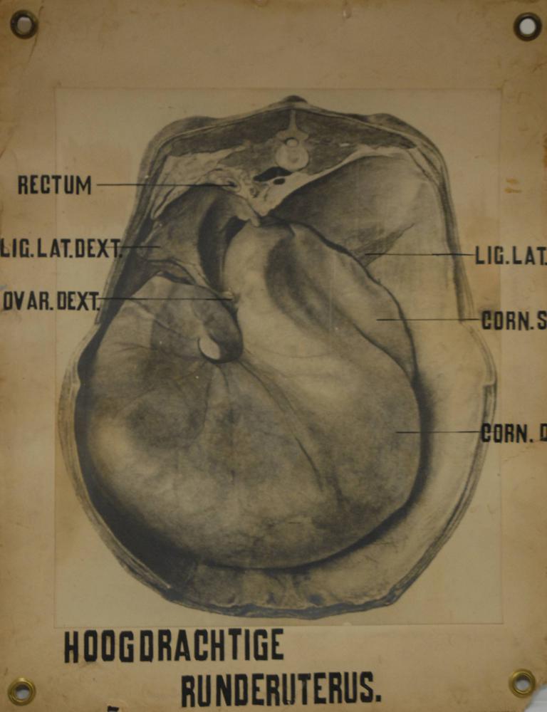 Onderwijsplaat m.b.t. uteruscontracties van het rund