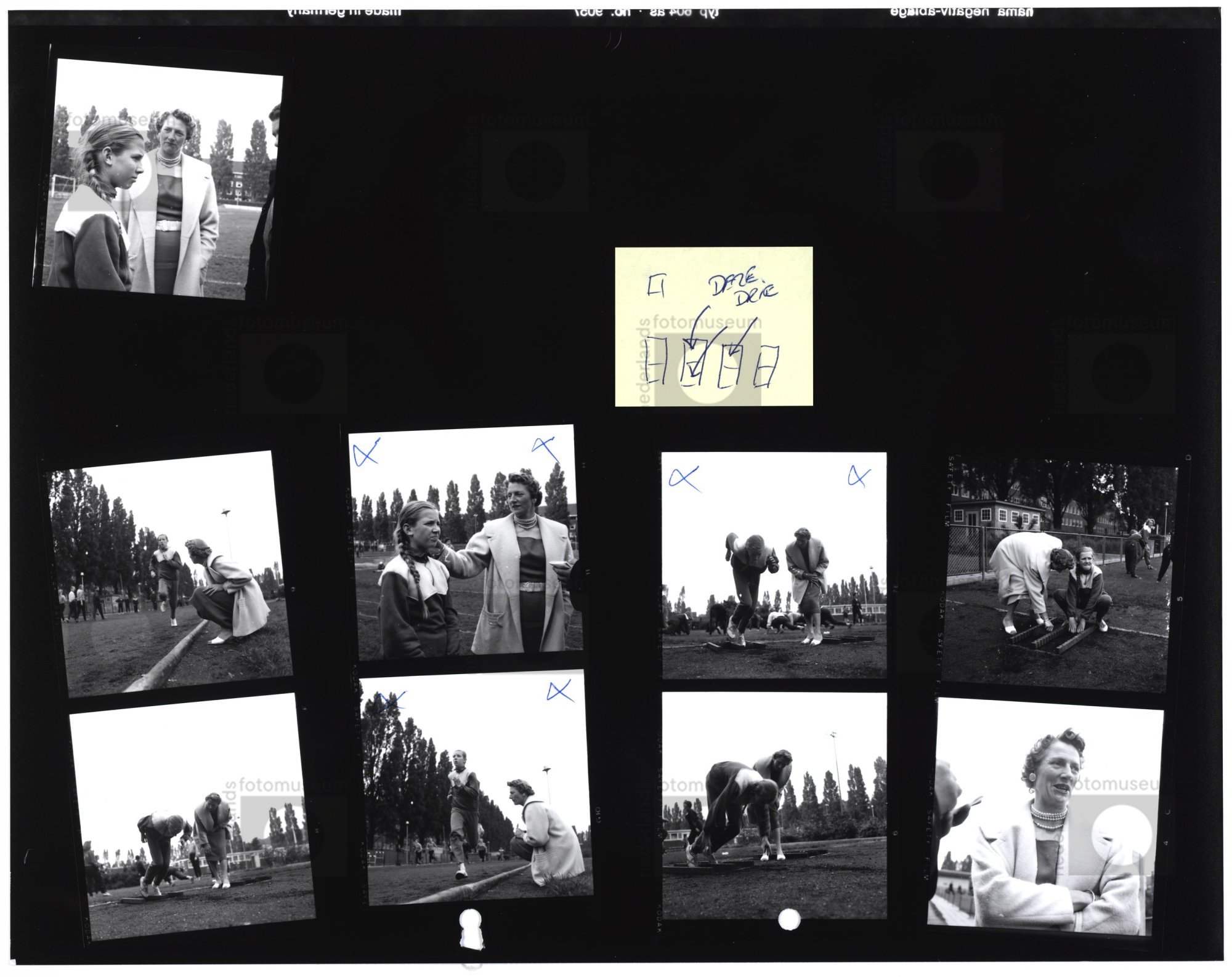 Atletiek. Fanny Blankers-Koen traint haar dochter op...