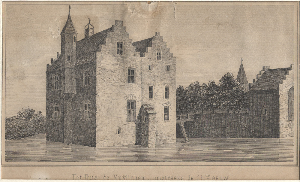 Gezicht op het Huis te Zuilichem met dubbele trapgev...