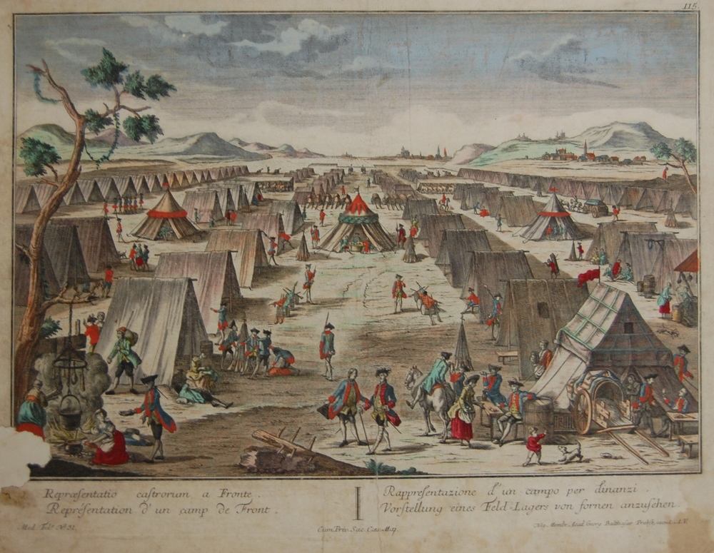 Opticaprent met gezicht op een legerkamp en bergen o...