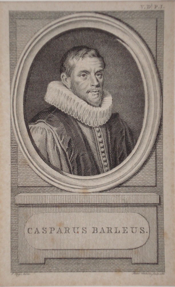 borstbeeld van Caspar Barlaeus, hoogleraar. In houte...