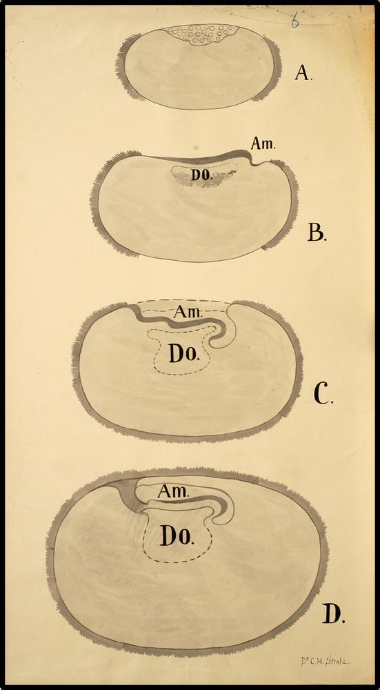 Onderwijsplaat van een stadium in de embryonale ontw...