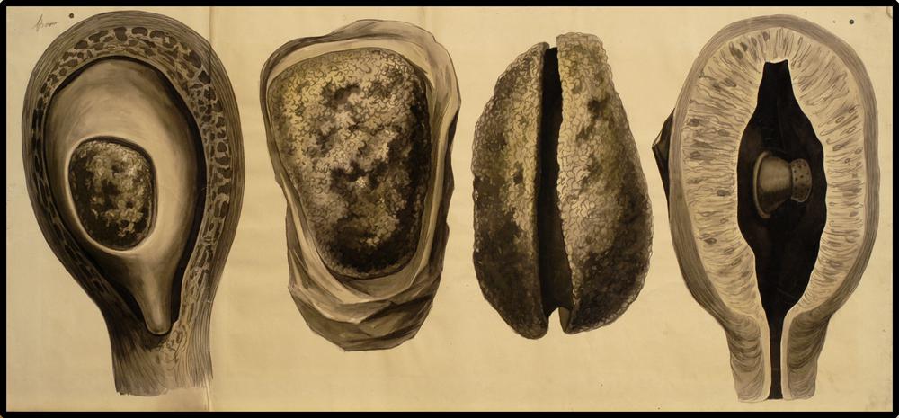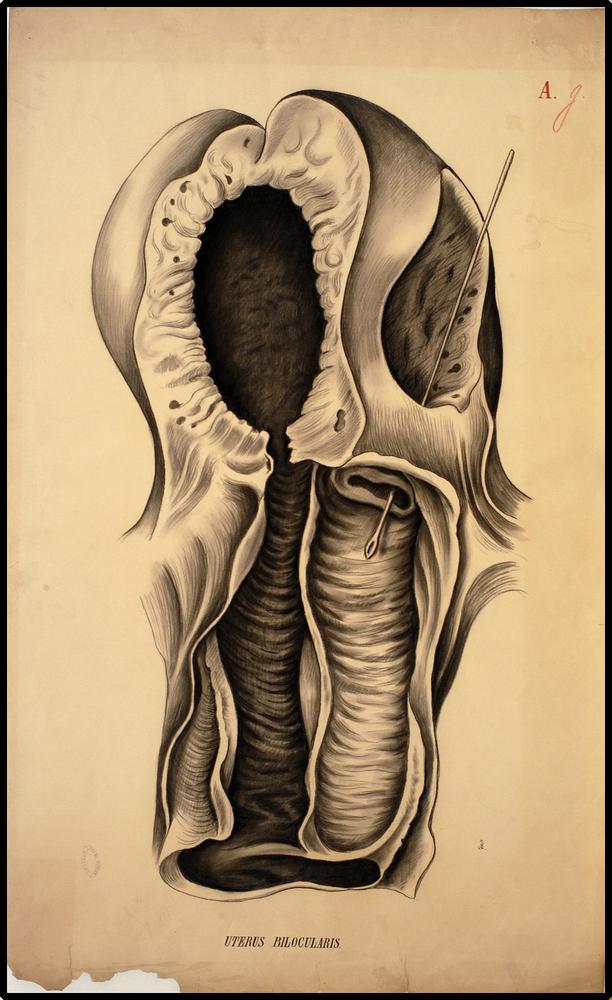 Onderwijsplaat van een doorsnede door een baarmoeder...