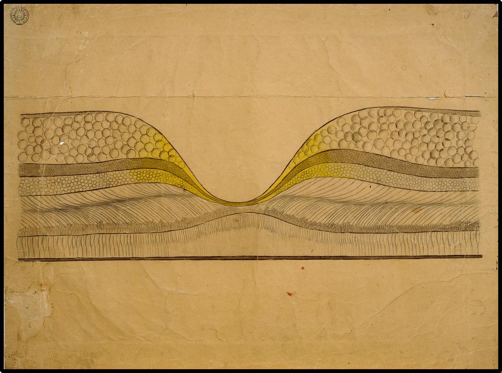 Loodregte doorsnede door de huid der handpalmvlakte ...