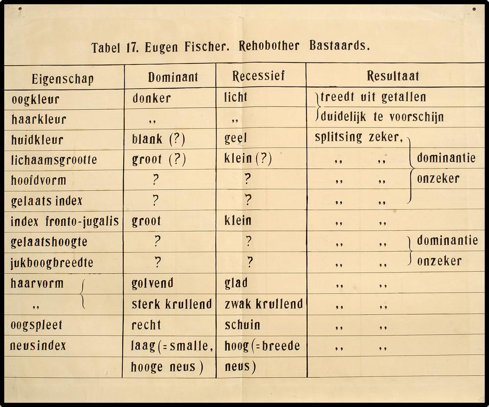 Tabel 17. Eugen Fischer. Rehobother Bastaards.