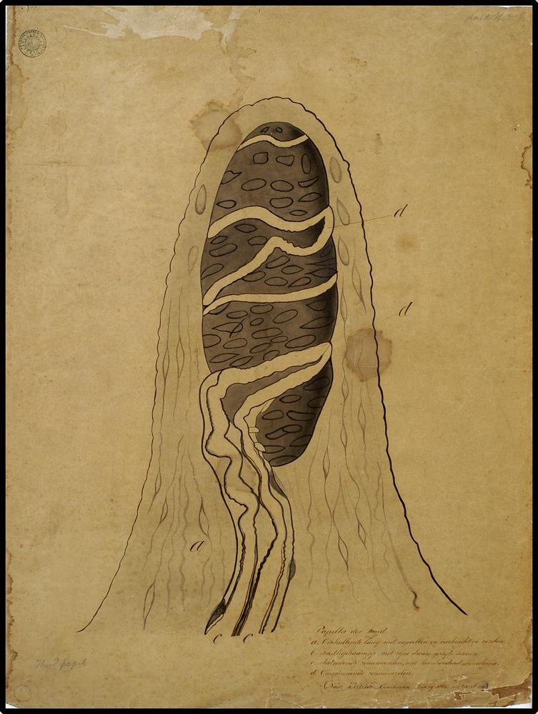 Papilla der Huid.