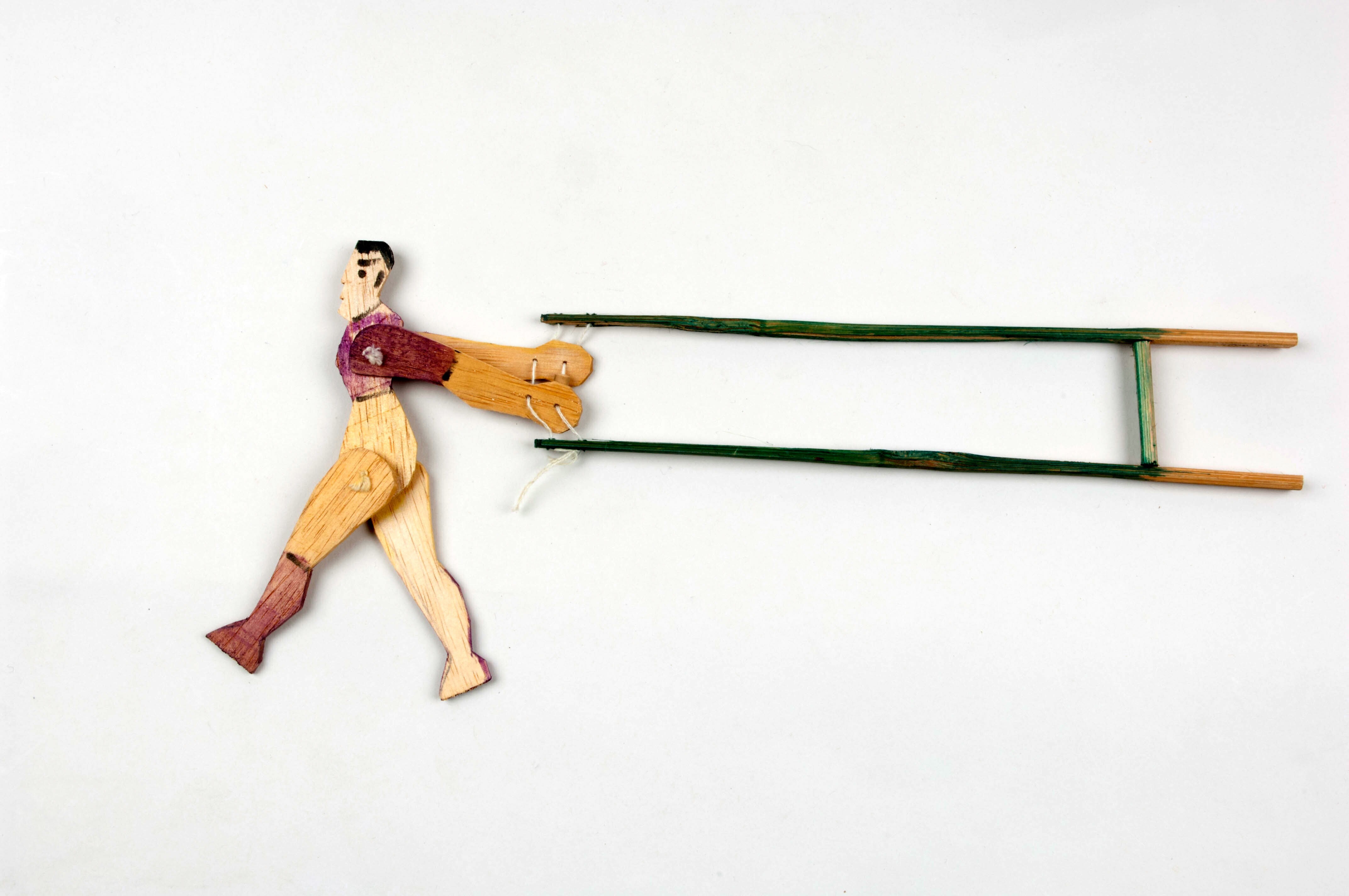 Kinderspeelgoed gevlochten vogel op wieltjes