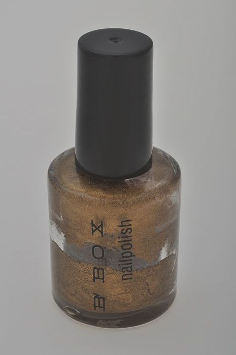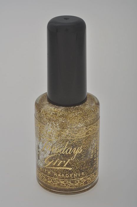Goudkleurige nagellak in cilindervormig glazen flesj...