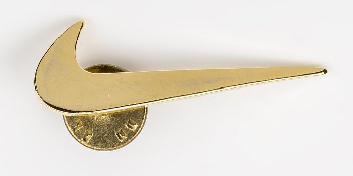 Goudkleurig metalen speldje in de vorm van 'Nike'-logo