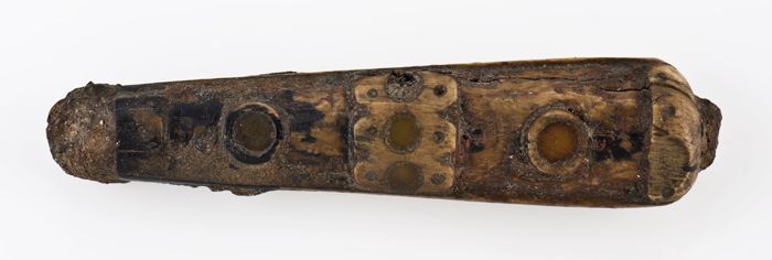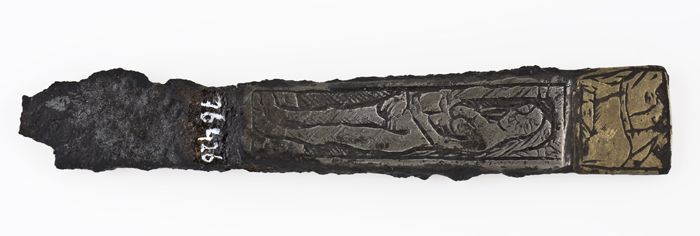 Mesheft met gegraveerde voorstellingen van Petrus en...