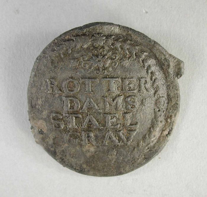 Staallood, textiellood, met "ROTTERDAMS STAEL GRAV"