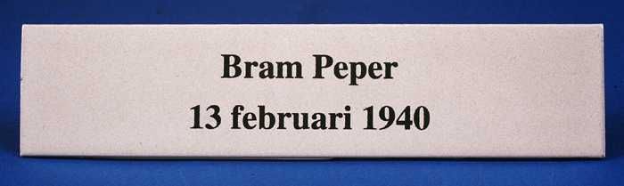 Langwerpige tegel met in donkergroen "Bram Peper / 1...
