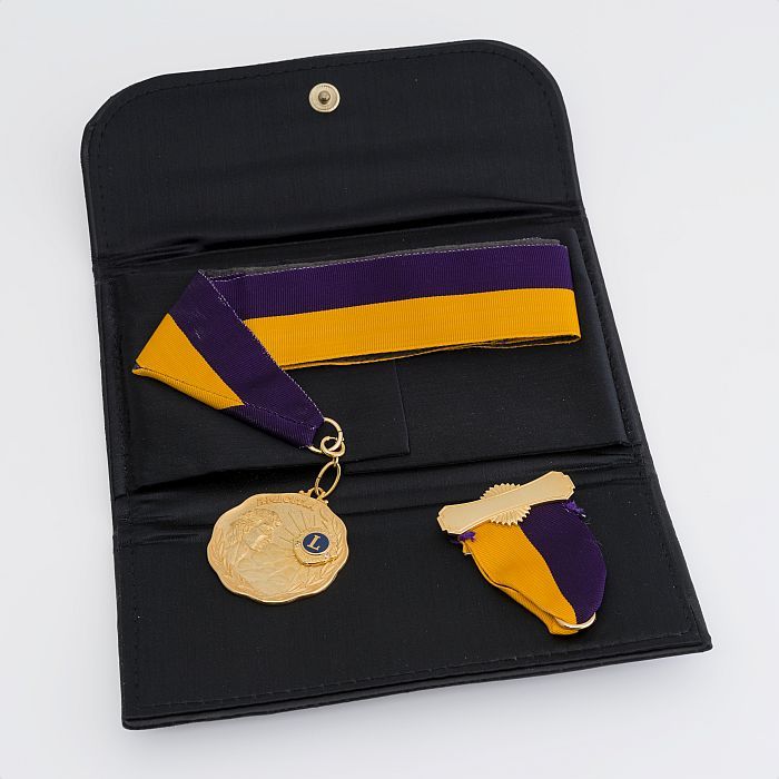 Kunstlederen enveloppe met goudkleurige medaille en ...