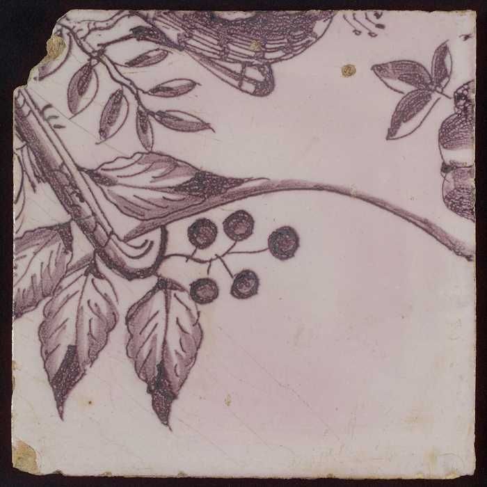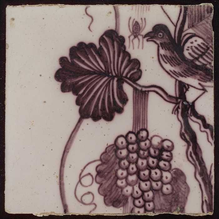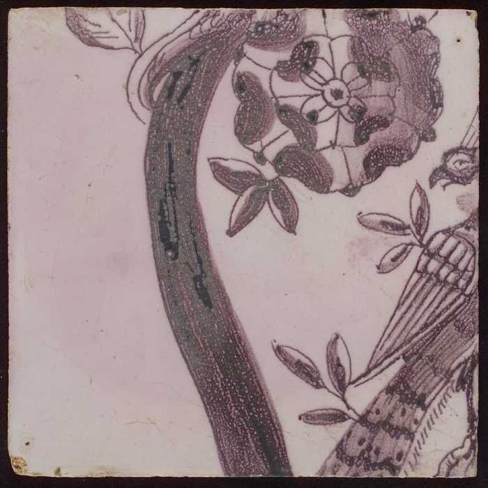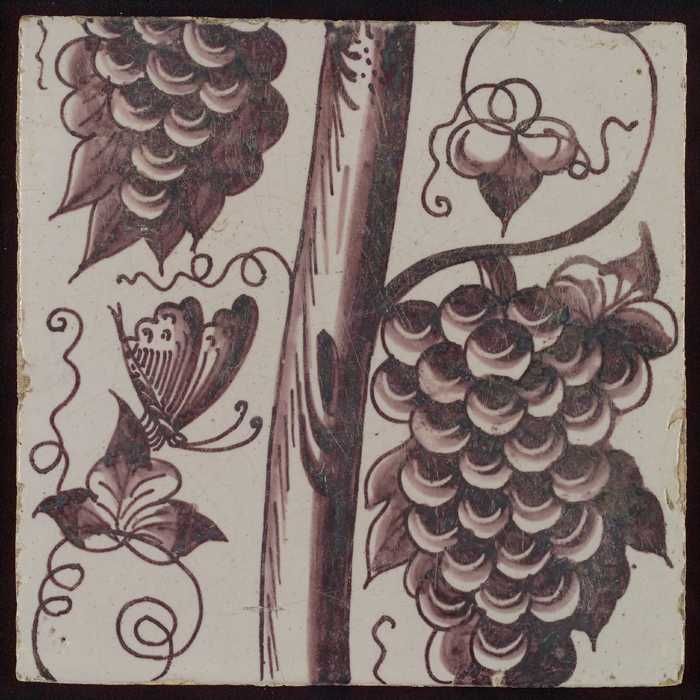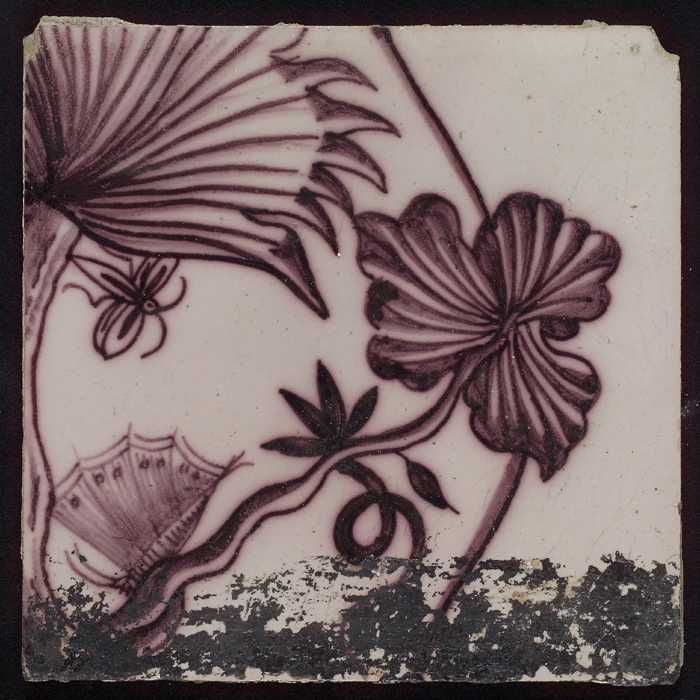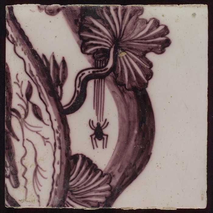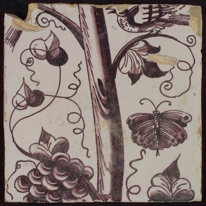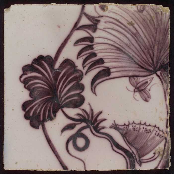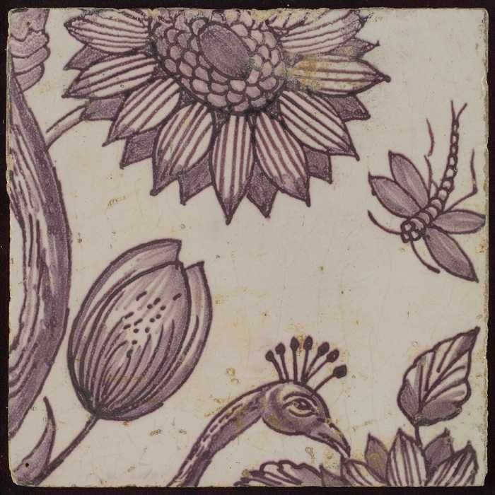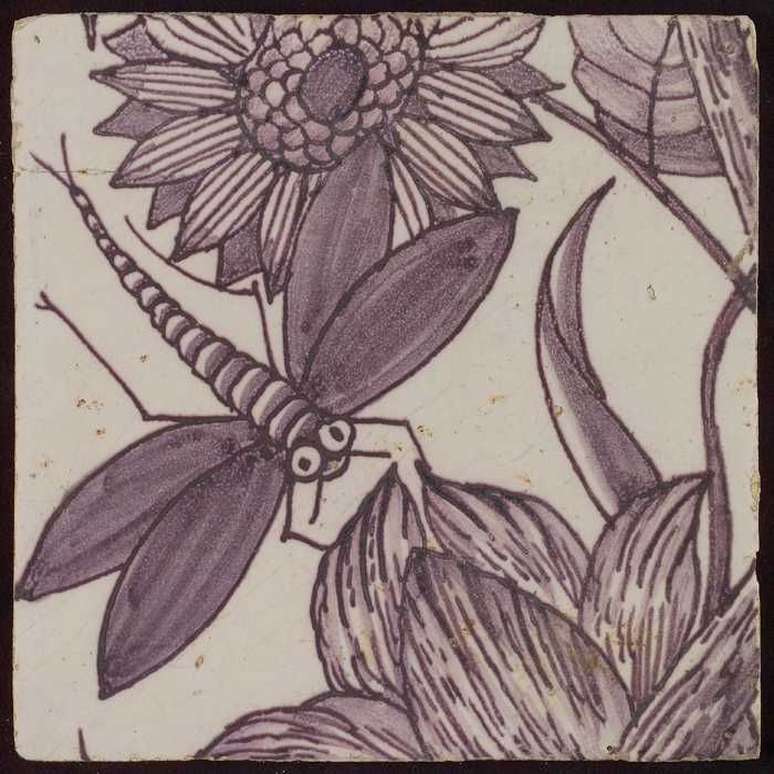 Tegel van paars tegelpilaster met bloemen, insecten,...