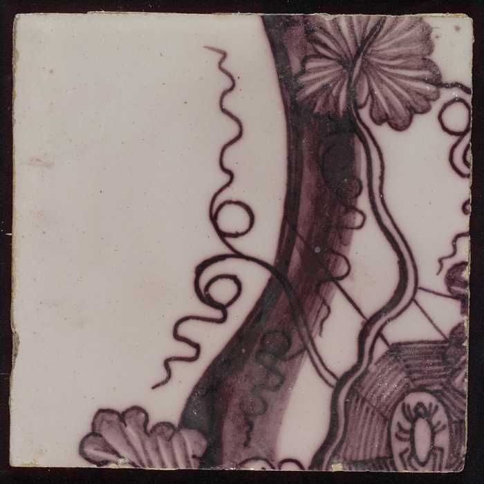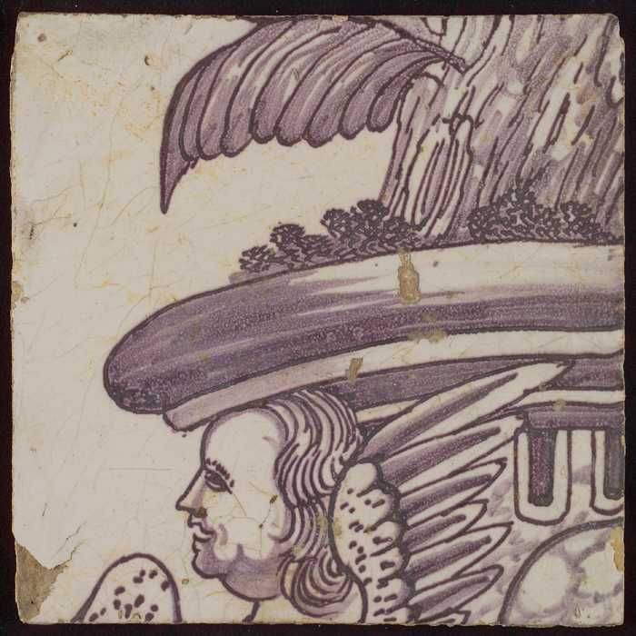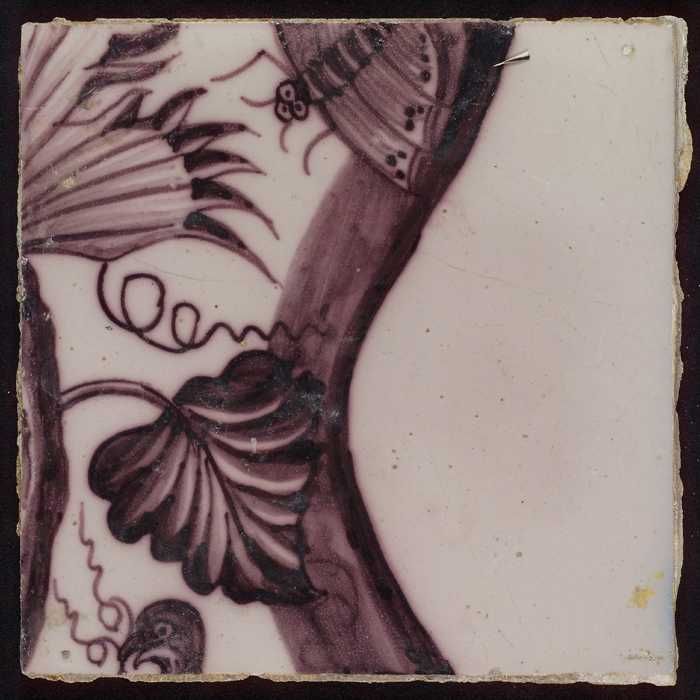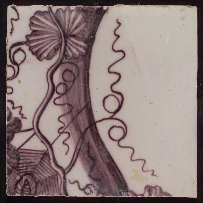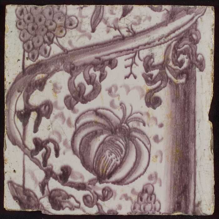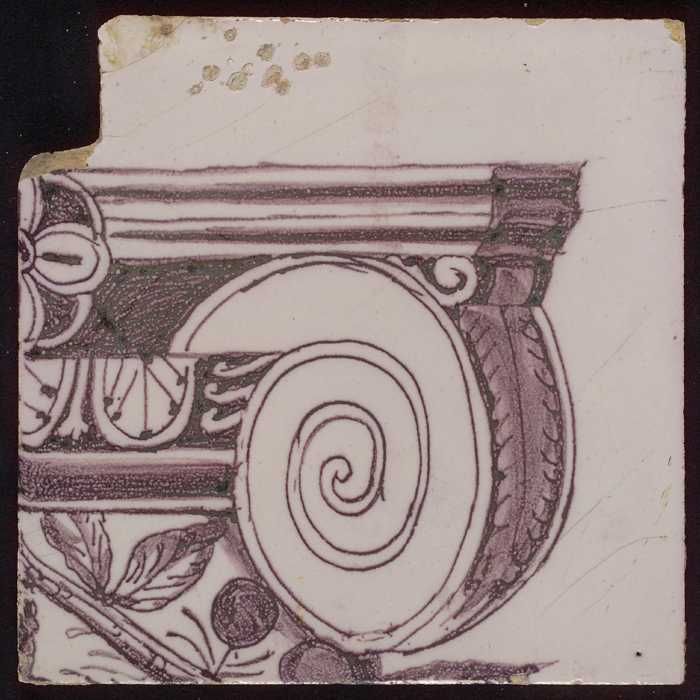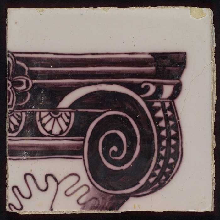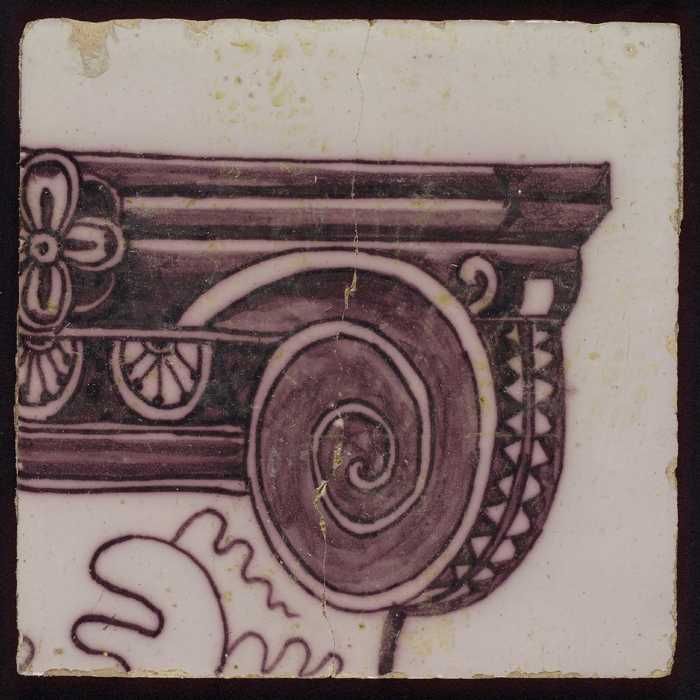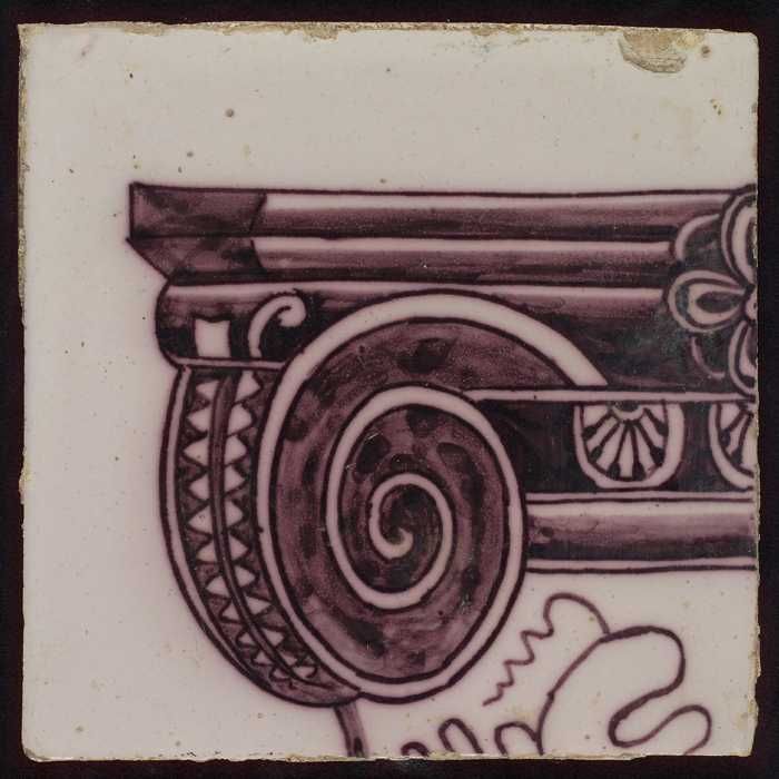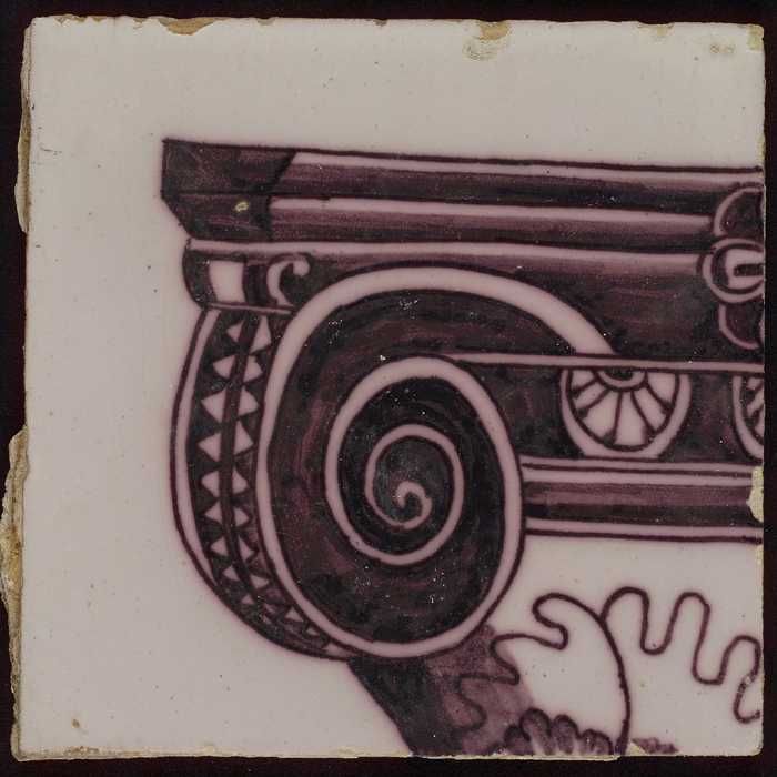 Tegel van paarse tegelpilaster waarop deel van zuil ...