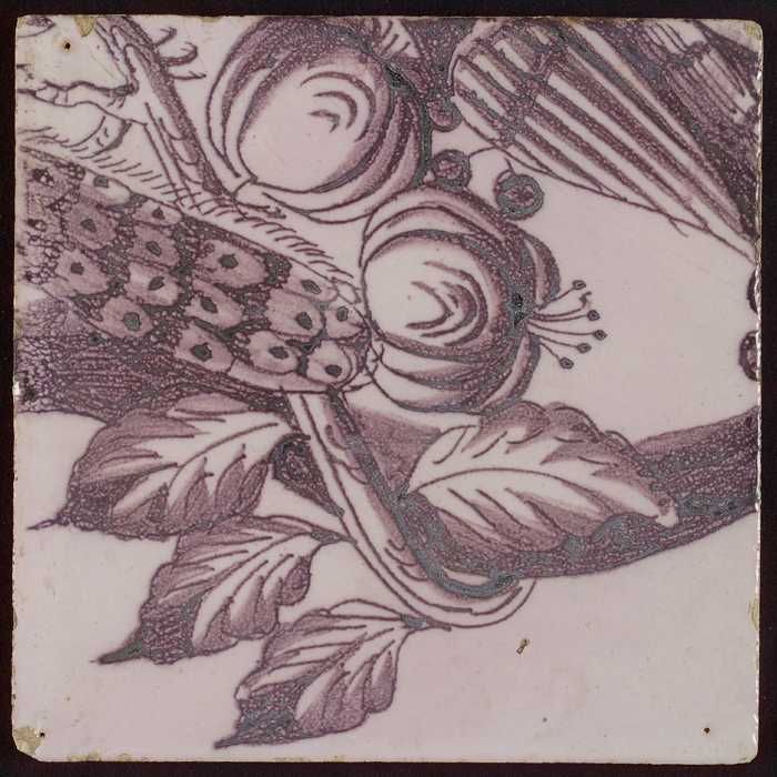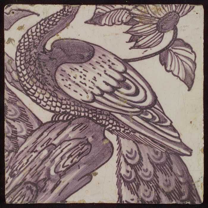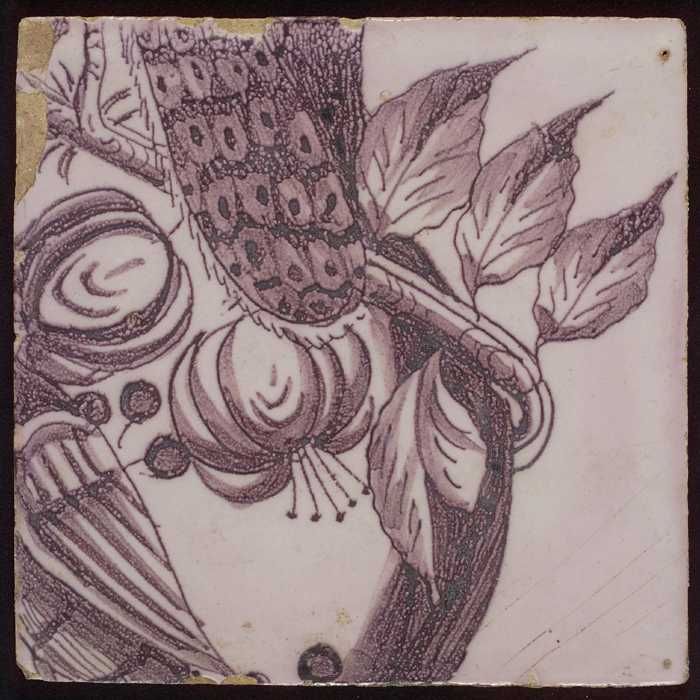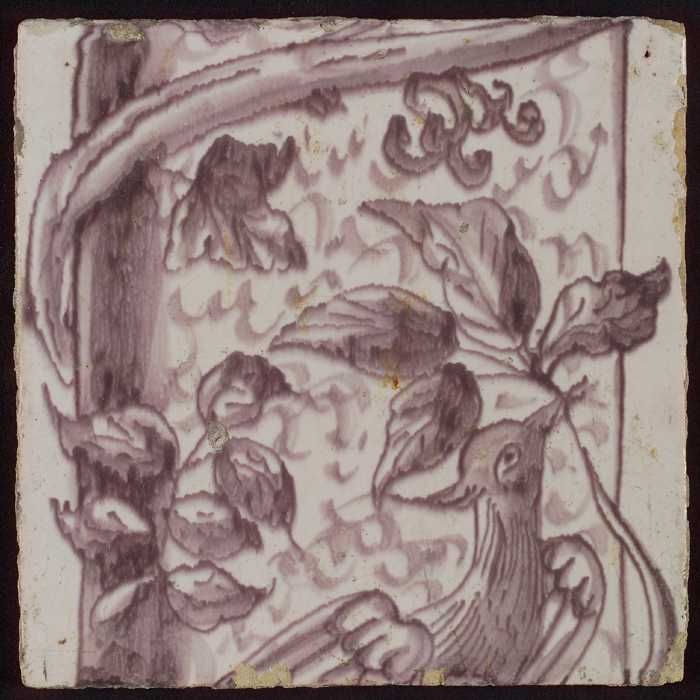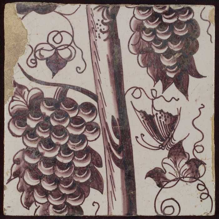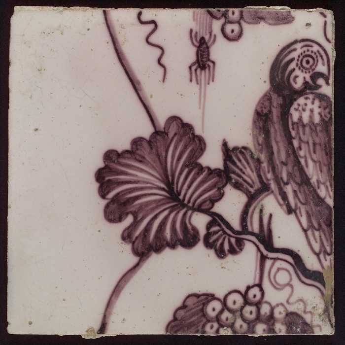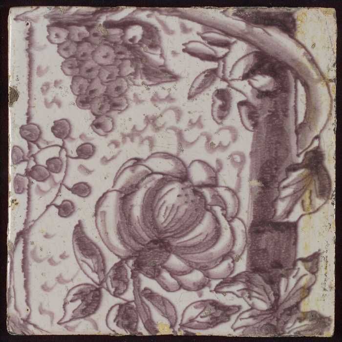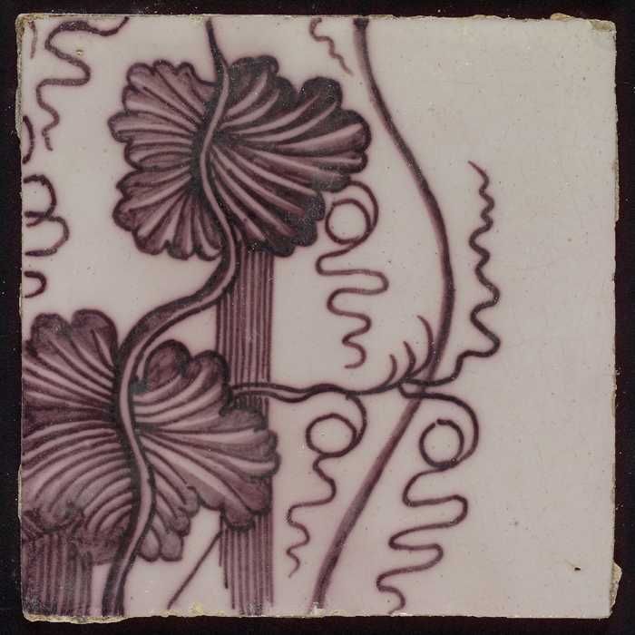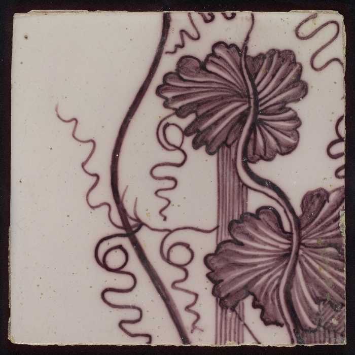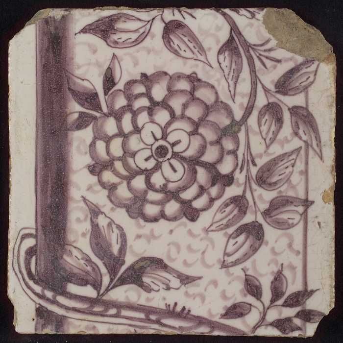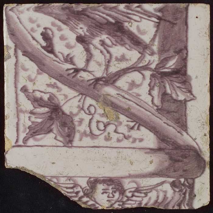 Tegel van paarse tegelpilaster waarop deel van zuil ...