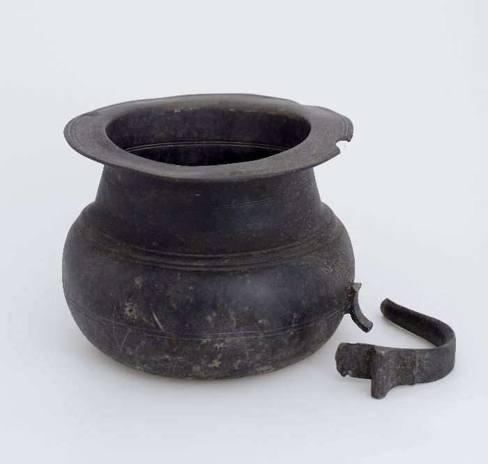 Tinnen kamerpot met bol lichaam en hoge hals, vraagt...