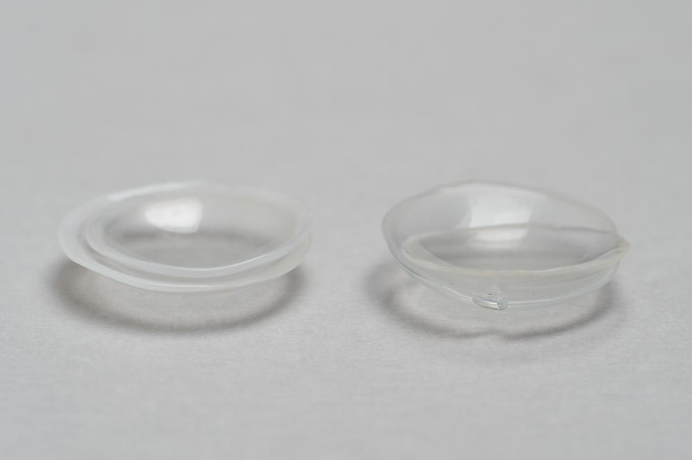 Vier contactlenzen in blauw metalen doosje