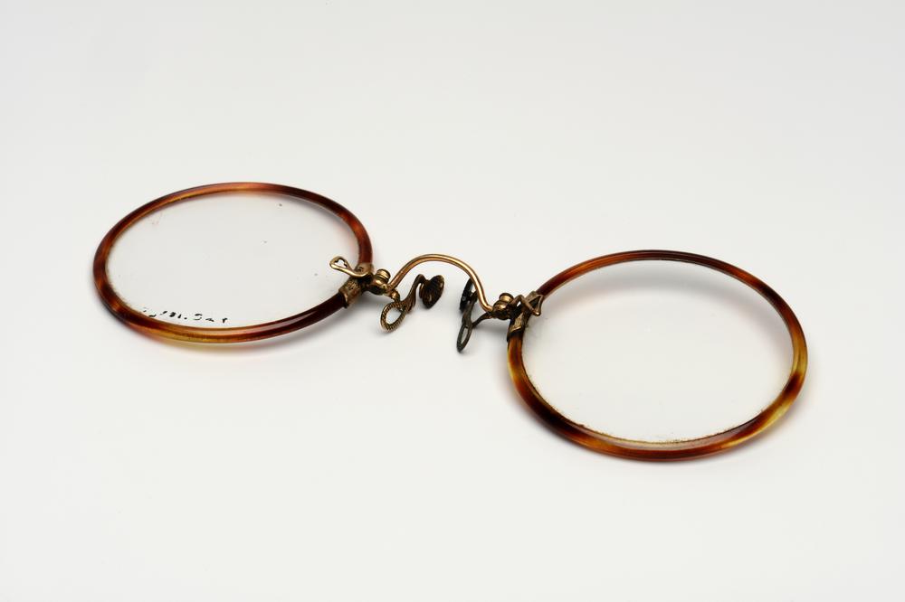 Knijpbril met gouden brug en celluloid montuur