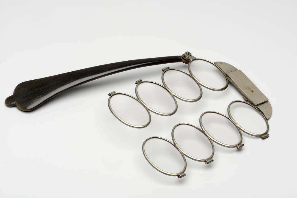Gedecoreerde schaarbril of binocle