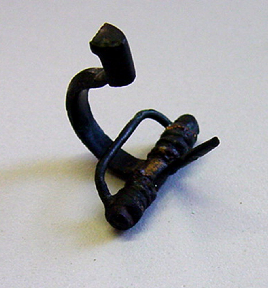 Fibula (mantelspeld) van brons, Romeins (2e of 3e ee...