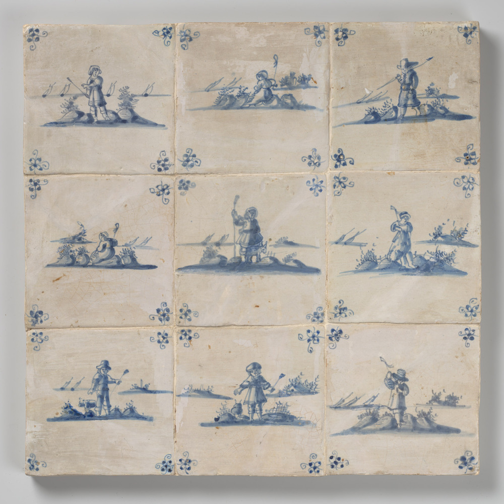 tegel van aardewerk met tinglazuur, voorstellende: h...