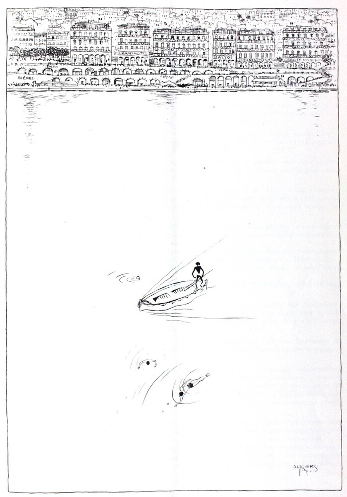 Illustratie door Jo Spier van een stadsgezicht aan z...