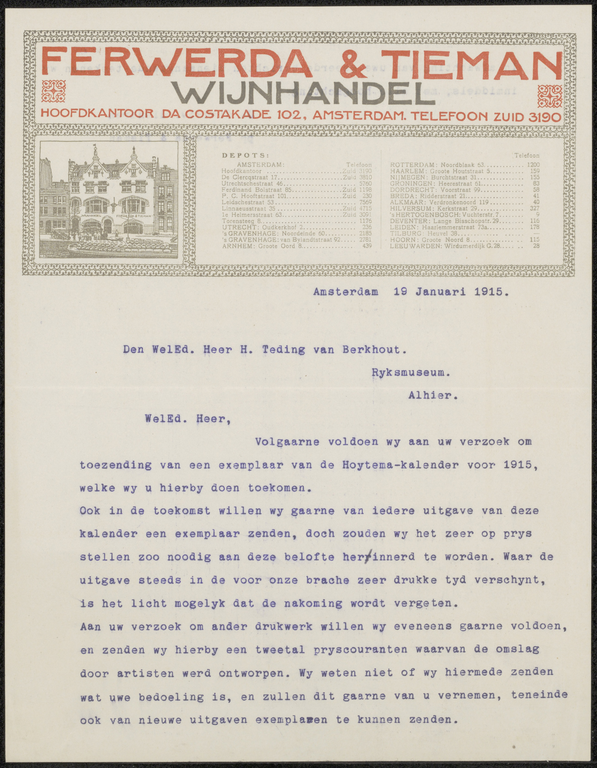 Brief aan jonkheer Hendrik Teding van Berkhout (1879...