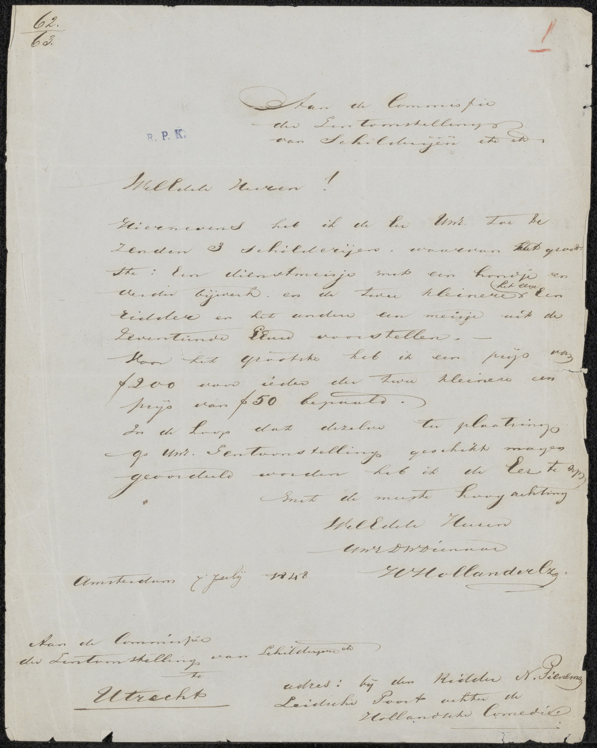 Brief aan de Commissie van de Tentoonstelling van Le...