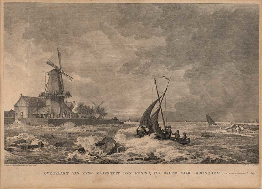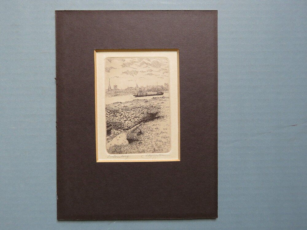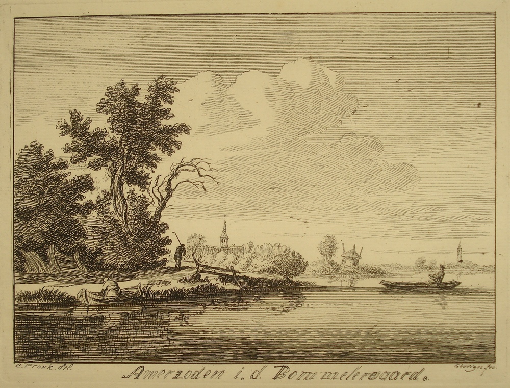 gravure voorstellende zicht op de Lek, gesigneerd C....