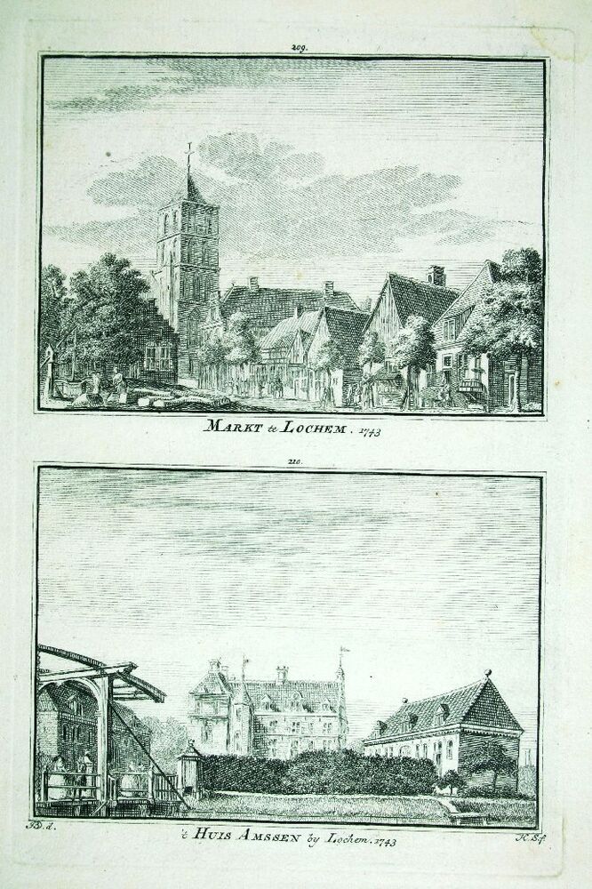Markt te Lochem. 1743 't Huis Amssen bij Lochem. 1743