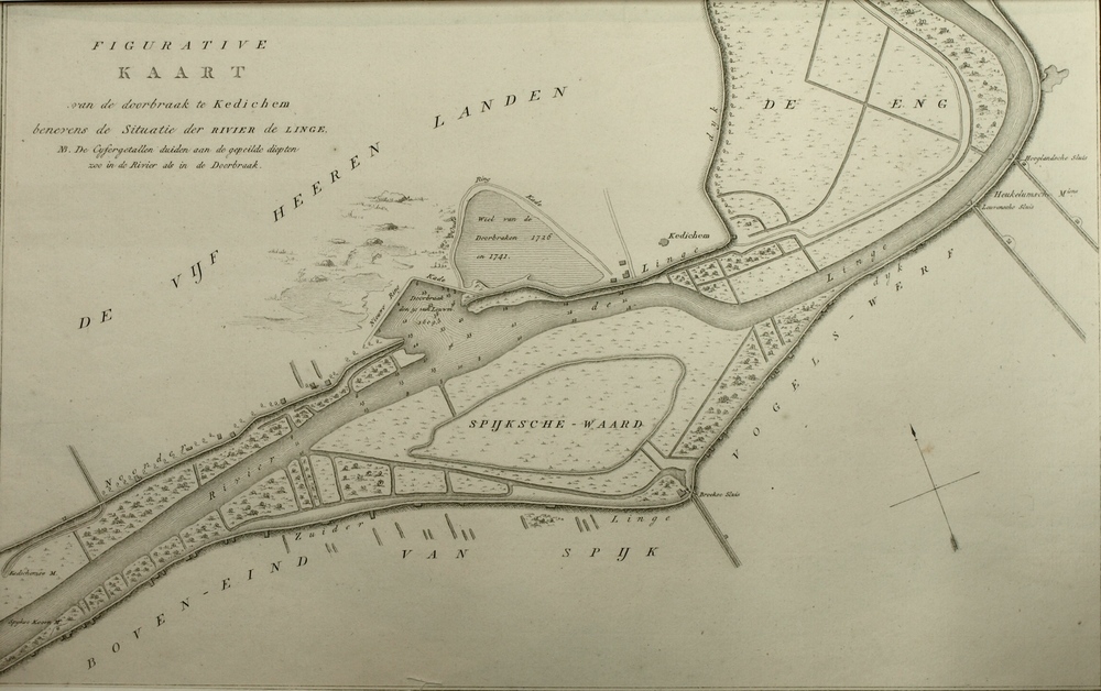 kaart doorbraak stroomgebied de Linge nabij Kedichem...