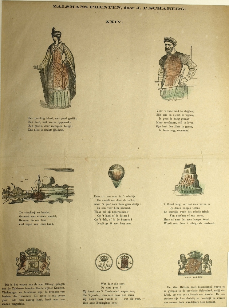 Centsprent met zes gekleurde prentjes over verschill...