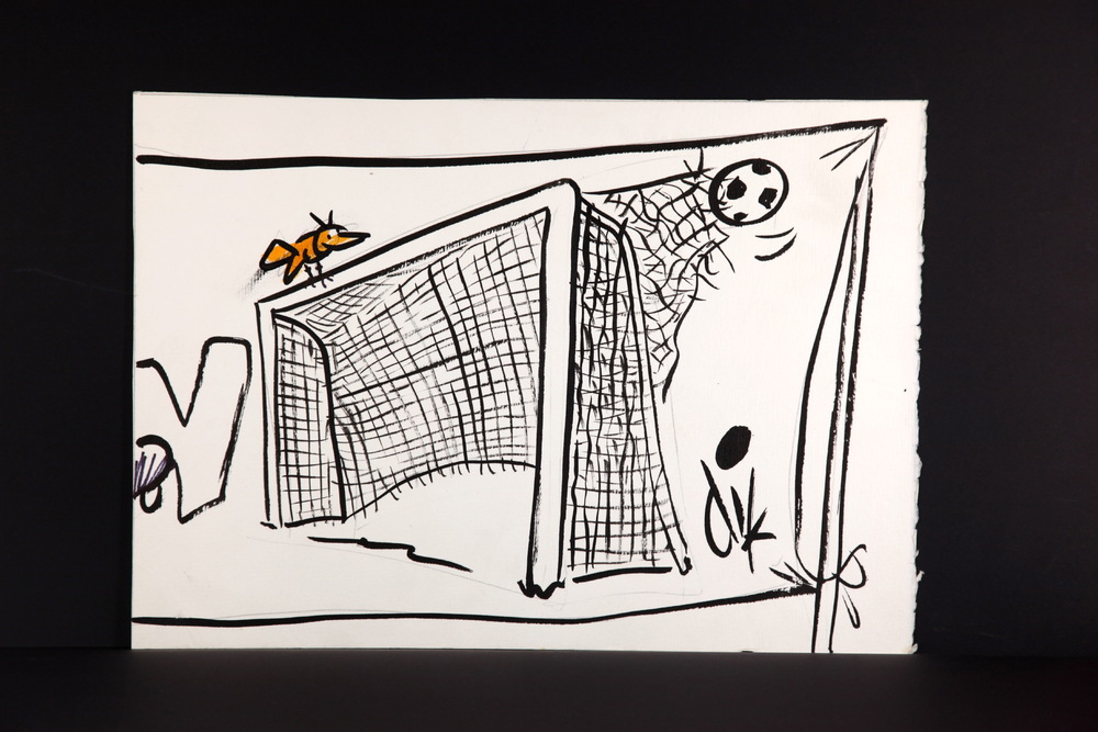 Karikatuurtekening: drieluik ‘Marco van Basten’, Dik...