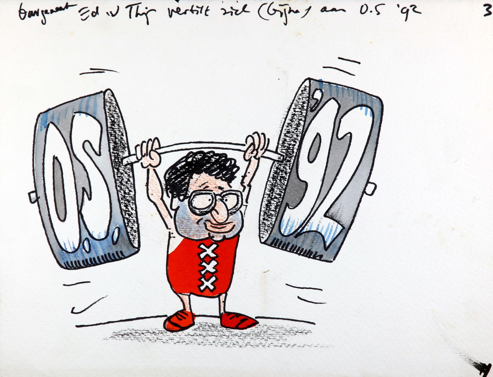 Karikatuurtekening: ‘Ed van Thijn vertilt zich (bijn...