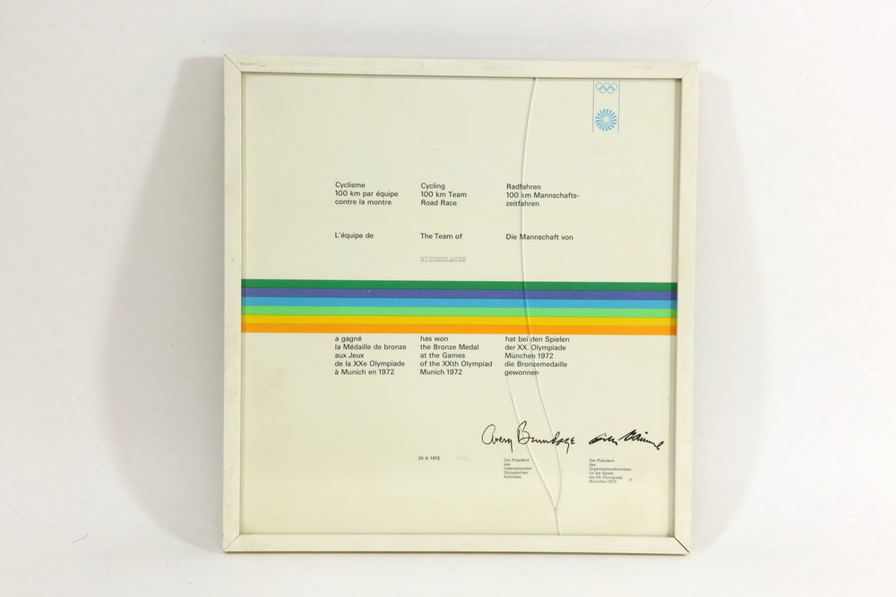 Olympisch winnaarsdiploma Kea Bouman, 3e plaats tenn...