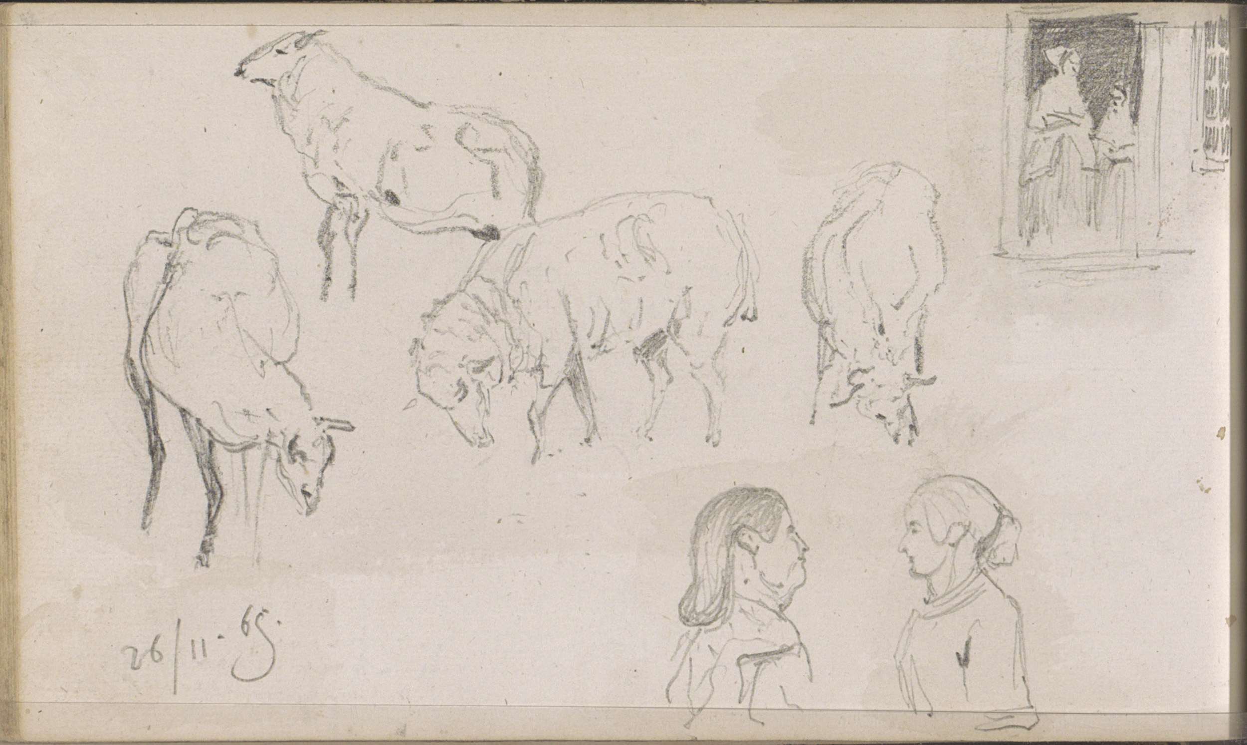Schapen, twee vrouwen in een deuropening en vrouwenk...