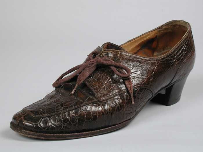 Bruine reptielenleren damesschoenen met vetersluitin...