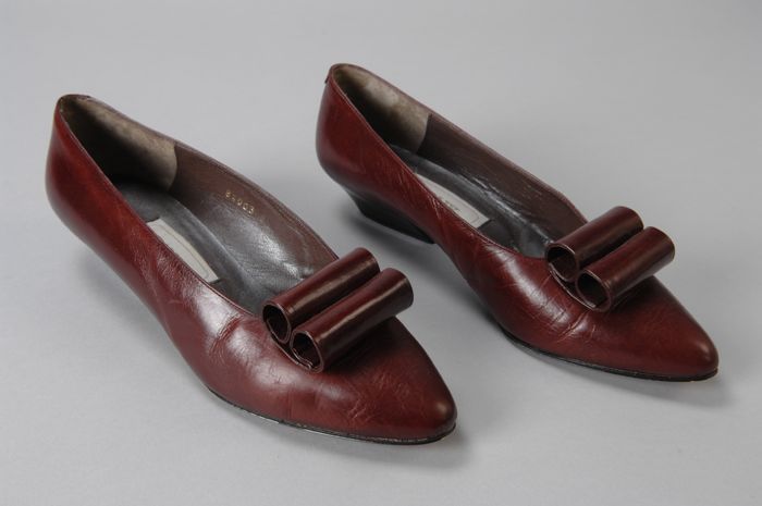 Bordeaux rode pumps met siergesp van opgerolde stroo...