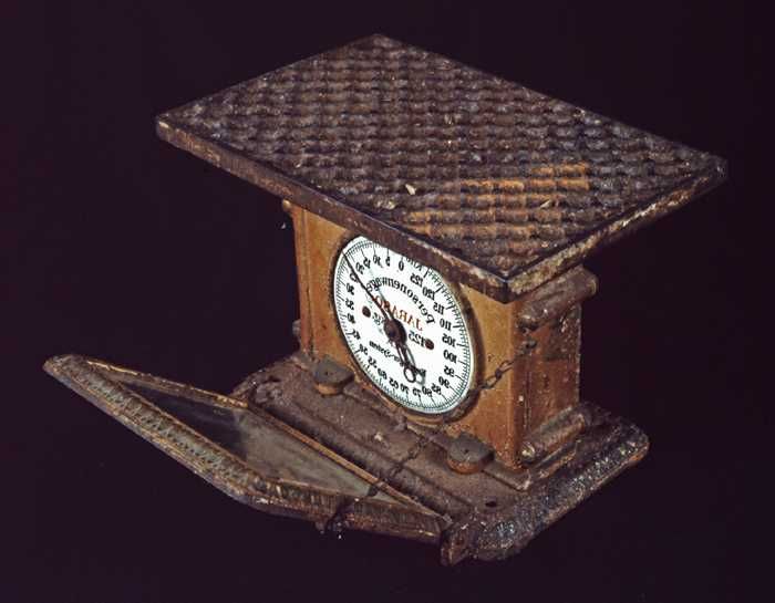 Gietijzeren personenweegschaal met opklapbare spiegel