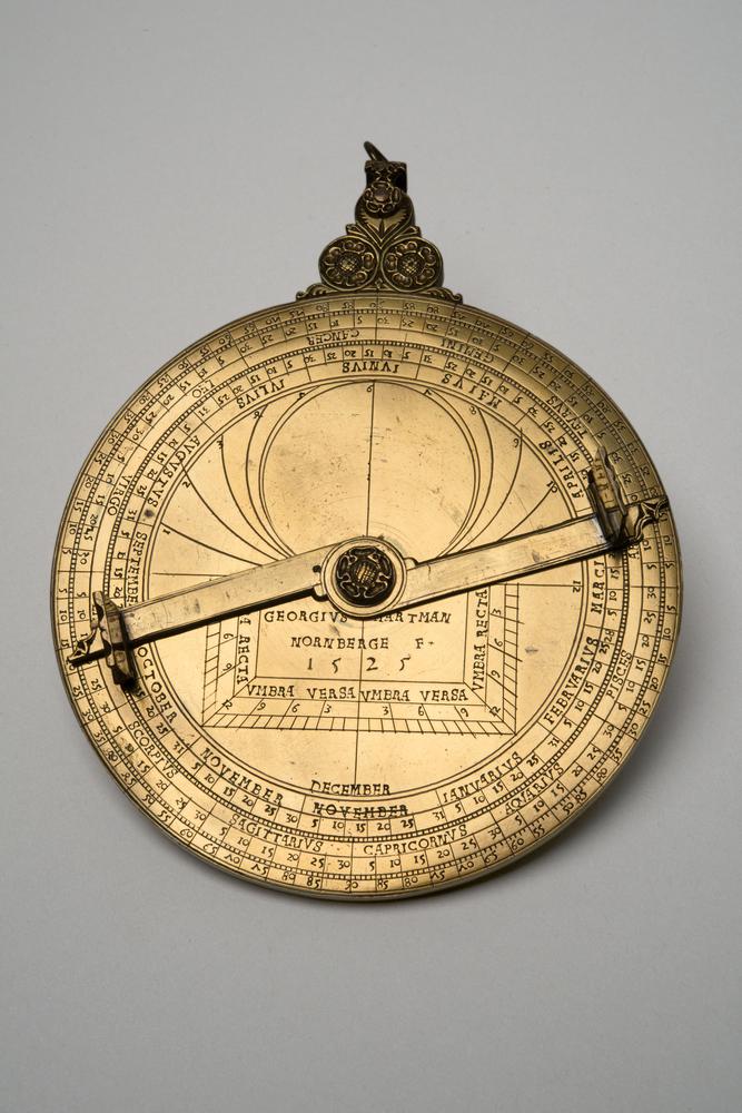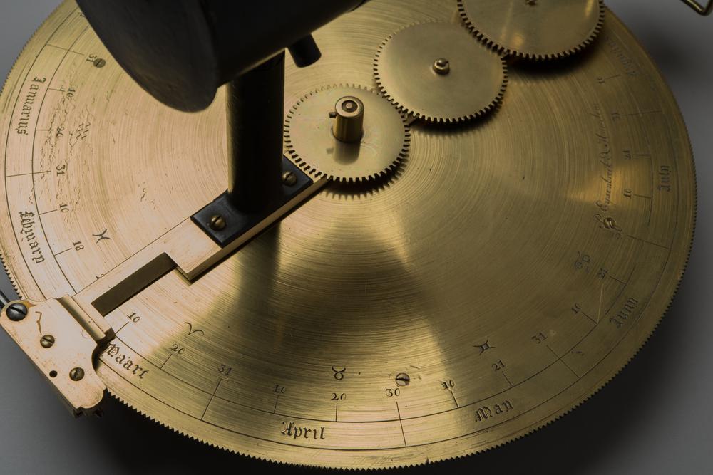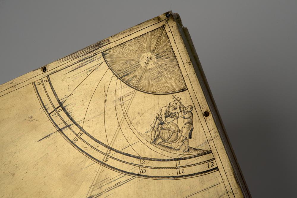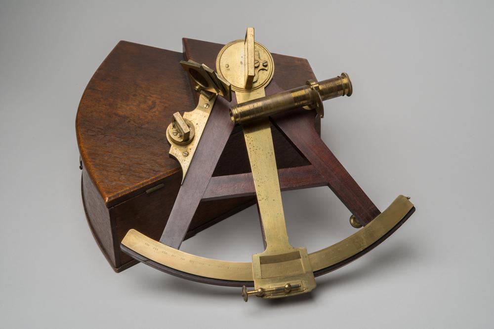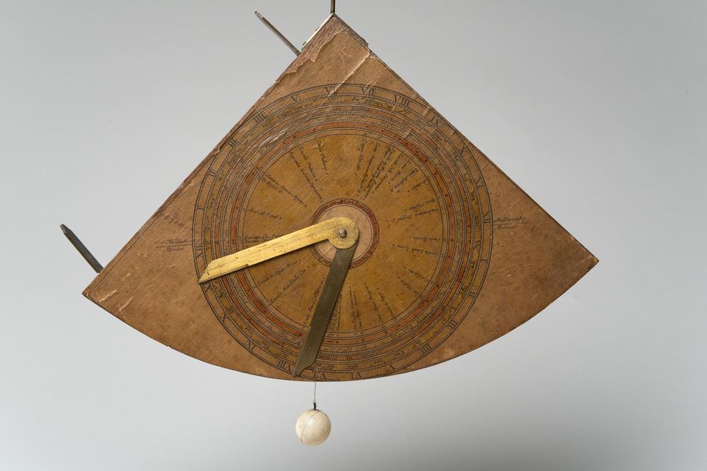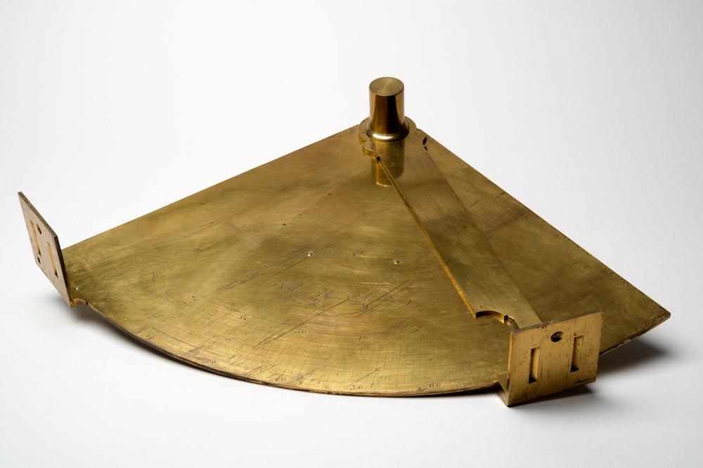 Koperen kwadrant met zonnewijzer