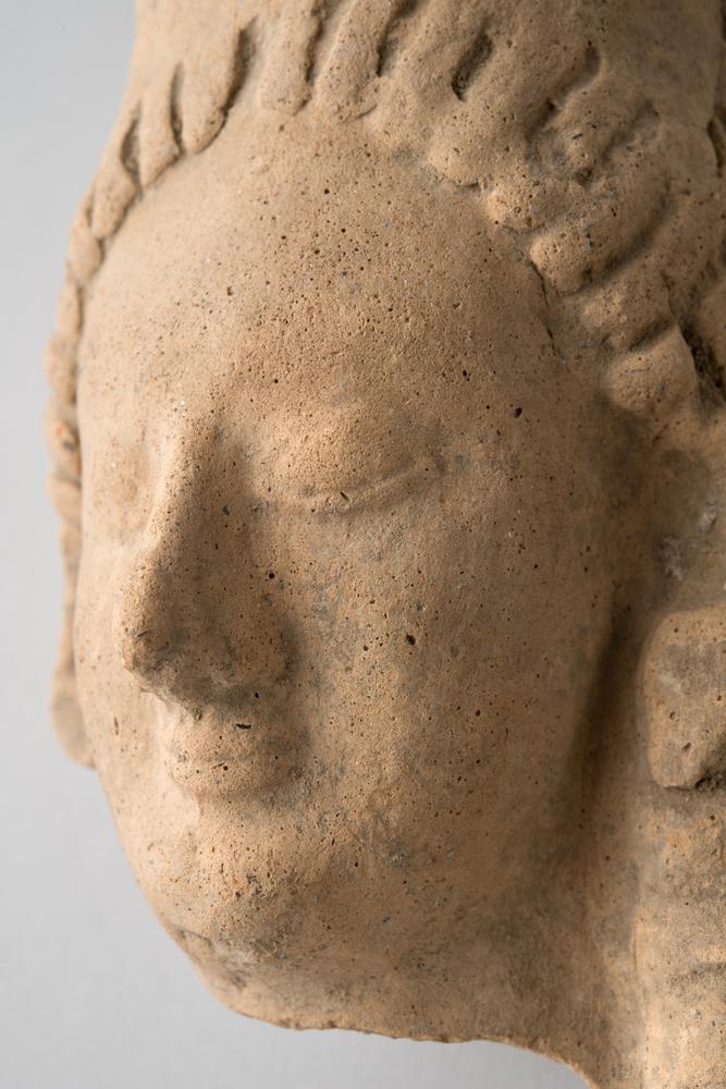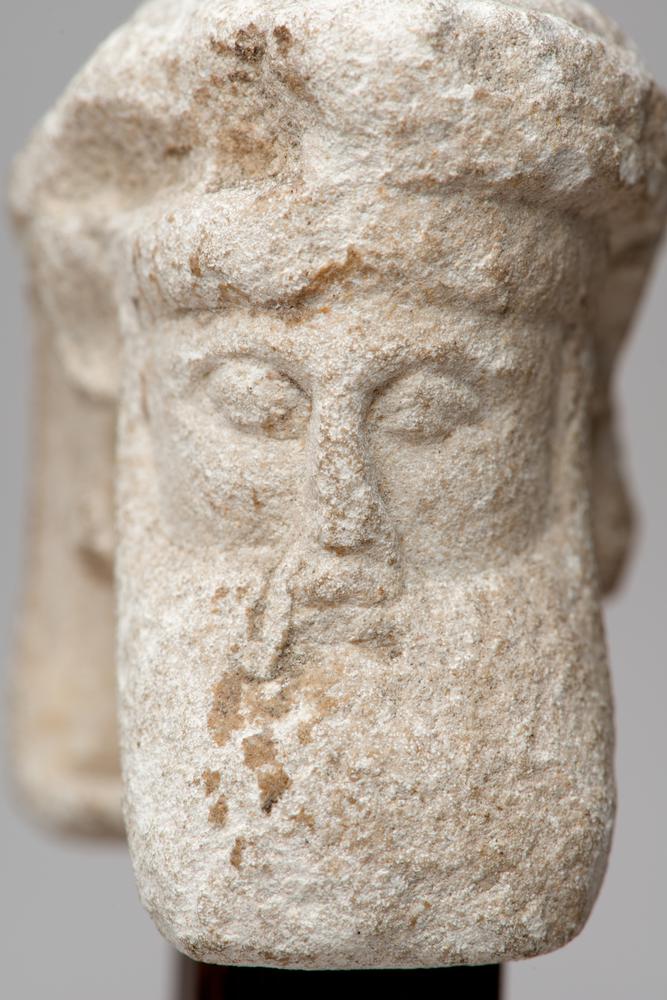Archaïsche sculptuur van een kop
