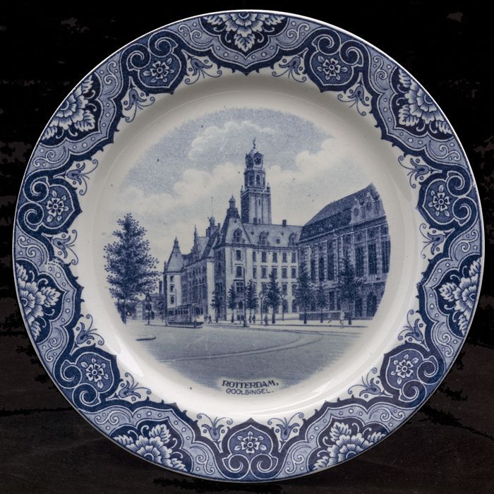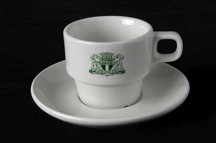 Witte kop en schotel met groen gemeentewapen Rotterdam