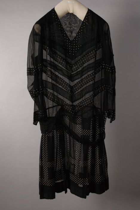 Zwarte organza charlestonjurk met opgenaaide witgest...