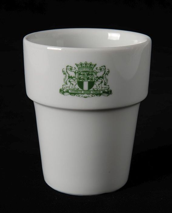 Witte melkbeker met groen gemeentewapen Rotterdam